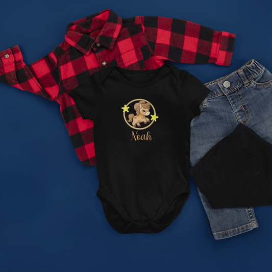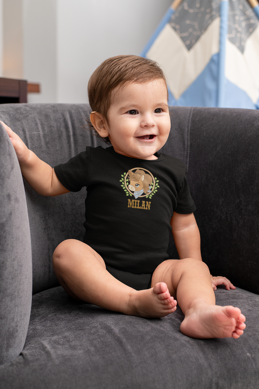 Bestickter Baby-Body personalisiert, Pony Motiv