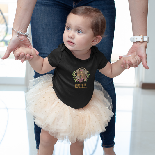 Bestickter Baby-Body personalisiert, Pony Motiv zur Geburt & Taufe