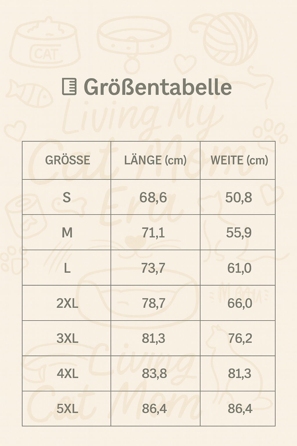 Mit dem Schriftzug „Living My Cat Mom Era“ und süßen Illustrationen von Katzen-Accessoires ist es das perfekte Geschenk oder Lieblingsstück für deinen Alltag.